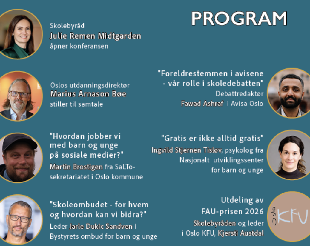 Oslo KFU har gleden av å invitere til årets happening 11. mars - Foreldrekonferansen! Vi byr på flere stemmer med felles retning, hvor bidragsyterne i sine roller og verv tilfører foreldresamarbeidet gode og faglige innspill. Målet med kvelden å inspirere, skape energi og engasjere alle som bidrar i laget rundt eleven. Arrangementet er GRATIS!